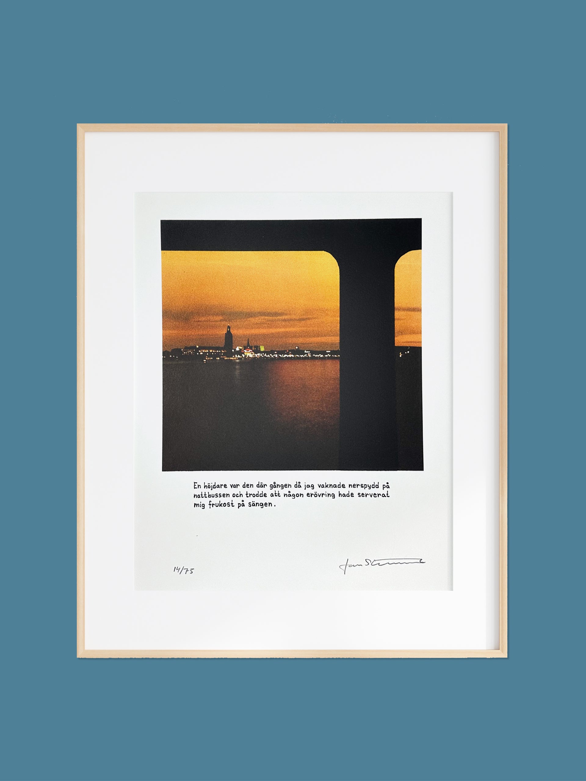Ett fine art-print tryckt på 400 grams Bockingford-papper. Konstverket har ett pappersmått på 41 x 50 cm och ett motivmått på 32 x 35 cm. Denna upplaga är limiterad till 75 exemplar och varje tryck är signerat och numrerat av konstnären.