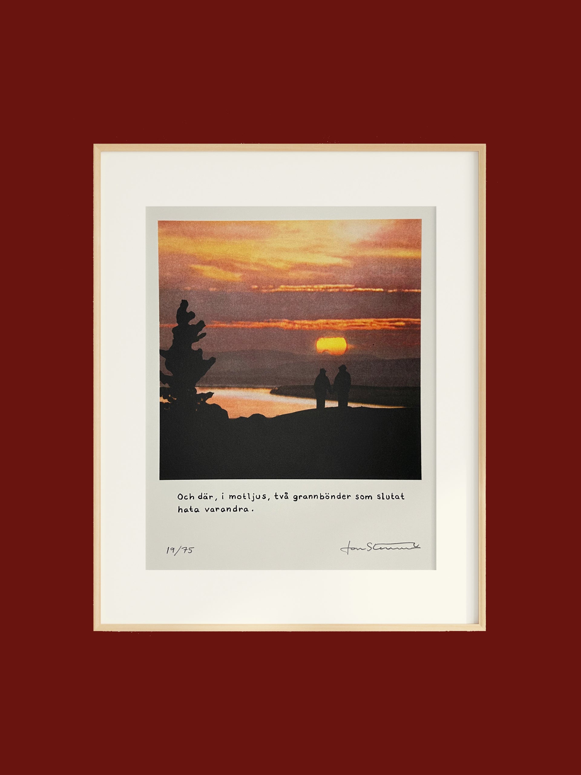 Ett fine art-print tryckt på 400 grams Bockingford-papper. Konstverket har ett pappersmått på 40 x 47 cm och ett motivmått på 32 x 36 cm. Denna upplaga är limiterad till 75 exemplar och varje tryck är signerat och numrerat av konstnären.