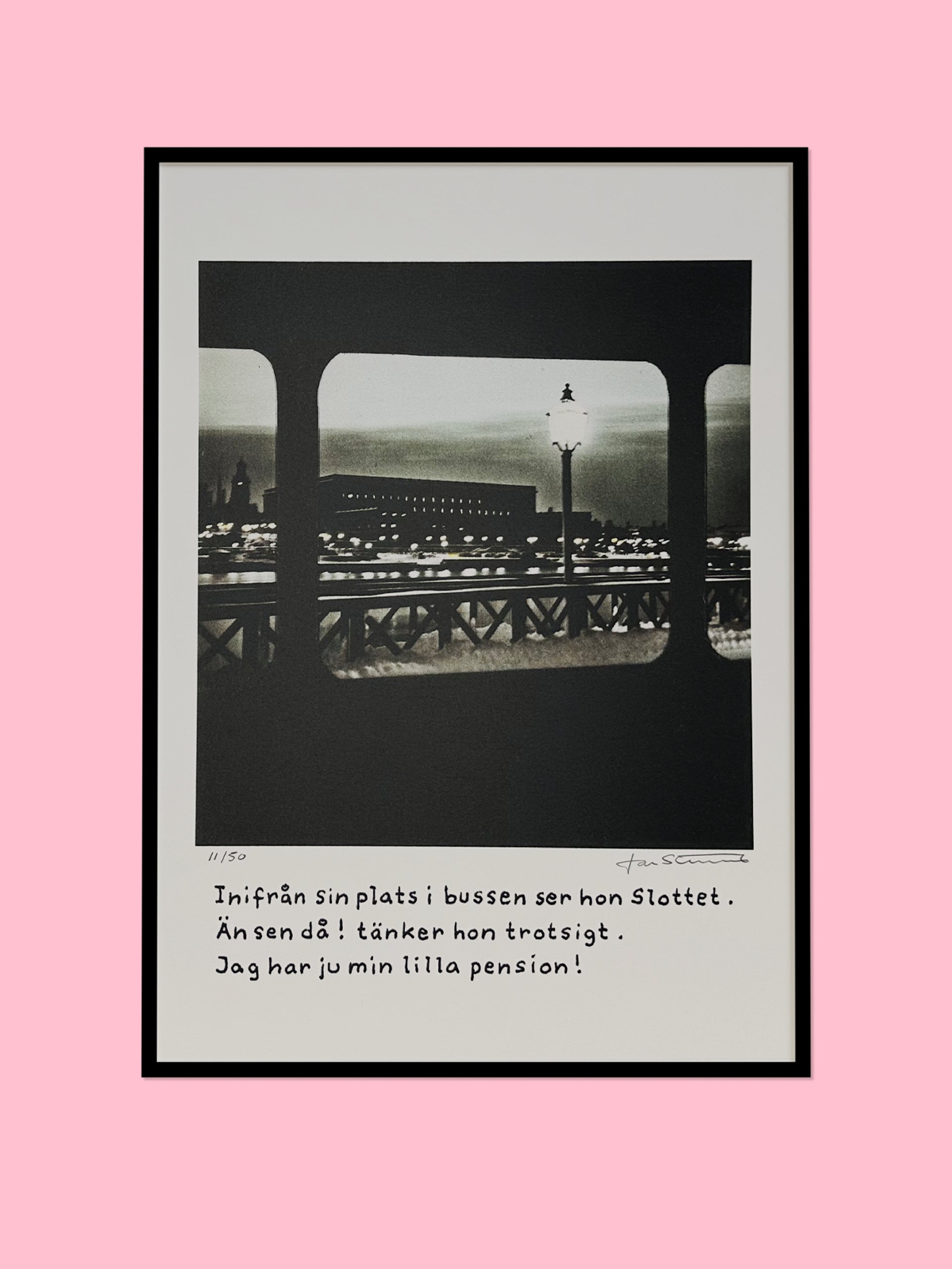 Ett fine art-print tryckt på 400 grams Bockingford-papper. Konstverket har ett pappersmått på 40 x 47 cm och ett motivmått på 29 x 37 cm. Denna upplaga är limiterad till 50 exemplar och varje tryck är signerat och numrerat av konstnären.